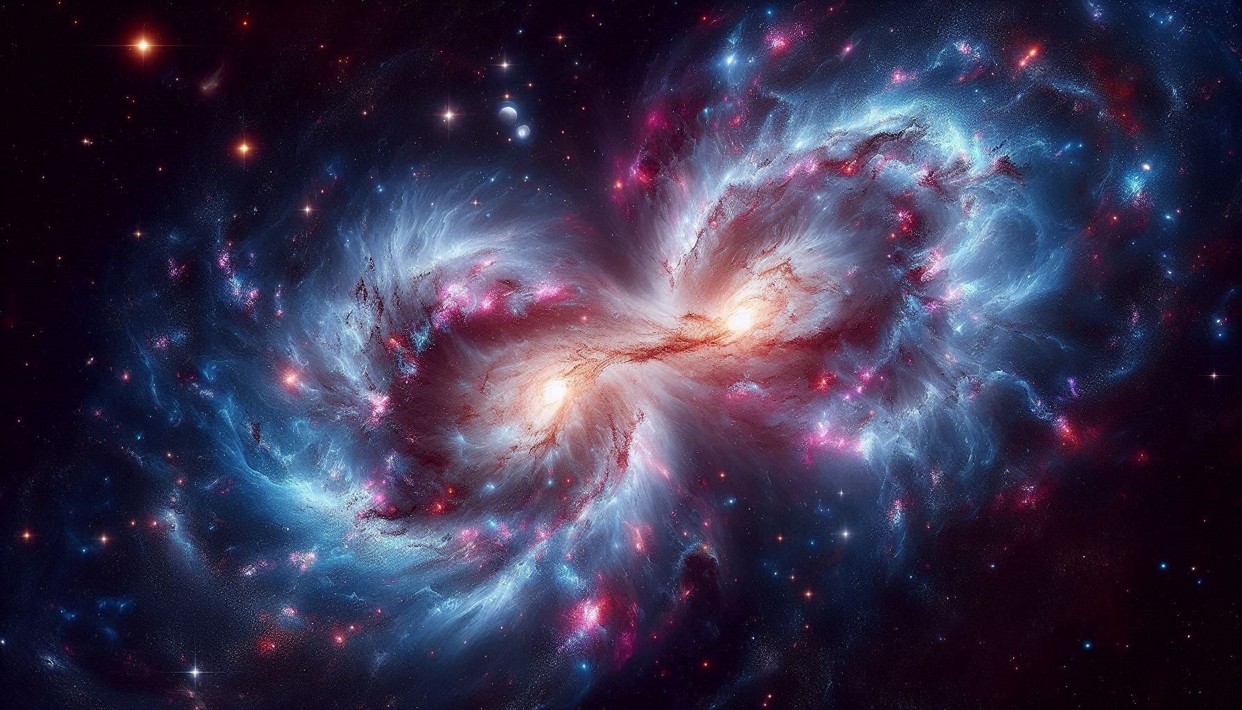 - Kozmický tanec: Hlavná snímka ukazuje dve špirálové galaxie, ktoré sa do seba vpletajú. Ich vzájomná gravitácia vyvrhuje prúdy hviezd a plynu do dĺžky tisícok svetelných rokov.